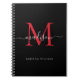 Caderno Espiral Nome do Script do Monograma Vermelho Borgonha Pret