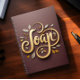 O nome Joan no filigre dourado sobre fundo de couro marrom (faux).