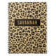 Caderno Espiral Nome personalizado Leopard Animal Print Patterno C