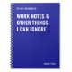 Notebook engraçado para colegas de trabalho, gerentes, amigos profissionais ou outros profissionais administrativos e de negócios. Personalize o nome a ser impresso na parte inferior do cobrir "Notas de trabalho e outras coisas que posso ignorar". Os notebooks personalizados são perfeitos para aniversários de trabalho, feriados, trocas de presentes no escritório e muito mais!