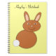 Este incrível notebook personalizável apresenta uma imagem adorável de um coelho felz pascoa criado usando arte vetorial. O coelho é marrom com uma cauda branca. Ele tem um grande sorriso no rosto como um coelho da Páscoa deveria.Há texto personalizável no topo do notebook permitindo que você o personalize para si mesmo ou o transforme em um presente maravilhoso para outra pessoa.