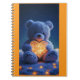 Notebook Laranja adorável com gráfico Teddy Bear e Shiny Heart. O notebook apresenta um cartaz carinhoso, carinhosamente segurando um coração brilhante que brilha na luz.