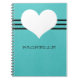 Notebook Doce e encantador de coração moderno, com um fundo turquesa e um coração fofo e borda riscada. Este notebook giro e giro lhe permitirá manter anotações e lembretes à mão com estilo. Personalize com o texto de sua escolha. Clique em "Personalizar" para encontrar opções adicionais de personalização.