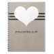 Notebook de coração moderno, doce e encantador, com fundo bege, coração bonito e borda riscada. Este notebook giro e giro lhe permitirá manter anotações e lembretes à mão com estilo. Personalize com o texto de sua escolha. Clique em "Personalizar" para encontrar opções adicionais de personalização.