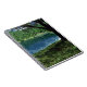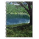 Um lugar tranquilo para descansar, debaixo de uma árvore no banco de pastagem de um lago azul profundo, olhando para as reflexões de nuvens e árvores na água ondulante. Uma cena 3D criada em Vue.
