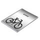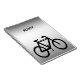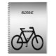 Este notebook apresenta um design contemporâneo de um padrão abstrato de bicicleta preta em prata, cinza e fundo metálico branco. O nome pode ser personalizado ou removido.