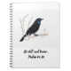 Este é um Notebook Espiral com uma imagem de um pássaro negro desenhado em Lápis Colorido e inclui um verso inspirador.