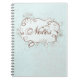 Este diário de notebook tem um fundo azul claro com flocos de neve esmaecidos adorando-o. O ponto focal é o design artístico com as suas espirais e curvas em branco e castanho e a palavra "Notas". Este é um livro muito bonito que poderia ser usado em muitas ocasiões.