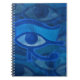 Notebook fotográfico espiral com o Eye of Horus texturou o desenho abstrato azul. Esta design apresenta o Olho de Cavalo em tons azuis nos Olhos de Cavalo desbotados no fundo.