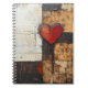 Um notebook espiral maravilhosamente trabalhado com um design de coração estilo boho contra um fundo rústico. Perfeito para jornalismo, anotações ou projetos criativos, este notebook combina encanto de terra com um toque de elegância boêmica.