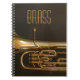 Fotografia de um eufônio sobre fundo escuro com texto personalizável, "latão" impresso acima.