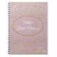 Notebook mostrado com um gráfico de ouros coloridos de estrelas de petite em um fundo cor-de-rosa claro e poeirento, com os textos de "Olivia" e "Notebook Bride" cercado por um oval com bordas de cores coordenadoras. Personalize este item e mude o nome para o seu ou retire o nome e o comprar como está. Coloração branca, ouro e rosa cor-de-rosa empoeirada.