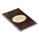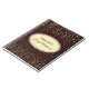 Notebook mostrado com um gráfico de estrelas petitas em ouro sobre fundo Bordéus com a frase dentro de "Notebook de Bride" em forma oval, com bordas coordenadas de marrom neutro e rosa-claro. Personalize este item e mude o nome para o seu ou retire o nome, altere as cores da estrela no filtro, na cor de fundo ou no comprar como está. Ouro, marfim, bordéus e coloração rosa.