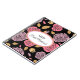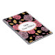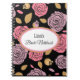 Notebook mostrado com um gráfico de rosas rosa bonito sobre fundo preto com a frase "Notebook Bride" dentro de forma oval com bordas de coordenação. Personalize este item e altere o nome para o seu ou retire o nome. Imagem do stock freepik.com