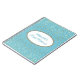 Notebook mostrado com um gráfico de estrelas petitas em ouro sobre fundo azul-céu com a frase "Notebook de noiva" dentro de forma oval com bordas coordenadoras. Personalize este item e mude o nome para o seu ou retire o nome, altere as cores da estrela no filtro, na cor de fundo ou no comprar como está. Ouro, cor branca e azul-céu.