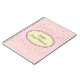 Notebook mostrado com um gráfico de estrelas petitas em ouro sobre um fundo cor-de-rosa pincelado com a frase "Notebook de noiva" forma oval dentro com bordas coordenadoras de mauve e taupe. Personalize este item e mude o nome para o seu ou retire o nome, altere as cores da estrela no filtro, na cor de fundo ou no comprar como está. Ouro, Ivory, Bordéus, madrugada e cor-de-rosa.