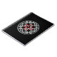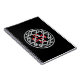 Um caderno com um design de nó celta com uma cruz quadrada vermelha no centro.