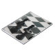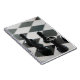 Fotografia do canto de um conselho de xadrez com peças pretas na posição da casa mostrando.