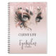 Este design de notebook de vidro apresenta um fundo brilhante de champanhe com tipografia preta personalizada e olhos brilhantes. Perfeito para profissionais de moda ou beleza.