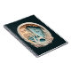 Um notebook com fotos em espiral com estilo de recorte de papel falsa da Torre Eiffel.