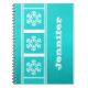 Caderno Espiral Notebook com flocos de neve modernos, Aqua