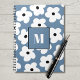 Um simples design de flores brancas retrógradas sobre fundo azul com um primeiro monograma personalizável.