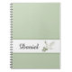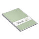 O bloco de notas de nome personalizado é apresentado numa cor verde-claro com uma tira de destaque com um impressão de pomba e um nome de amostra. Personalize este item e altere o nome para o seu. Imagem licenciada