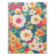 Um cobrir animado e vibrante para notebook com um padrão floral vivo. A design é cheia de grandes flores em laranja branca e quente cremosa, complementada por flores vermelhas e amarelas menores. Um fundo azul marinho ou lacado profundo proporciona um belo contraste, fazer as cores quentes das flores pop. Este cobrir é perfeito para quem ama a natureza e quer adicionar um toque de cor e artista às suas notas e planos diários.