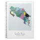 Um mapa ilustrado da Costa Rica apresentando o vulcão Arenal com algumas das espécies mais icônicas de fauna selvagem do país: tucano, sapo de árvores e beija-flor.