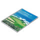 O notebook é mostrado com uma impressão de foto de um belo campo de golfe no lado do oceano. Personalize este item ou comprar como está. Imagem do stock