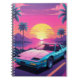 Notebook de automóveis retrorreflectores, com vaporwave futurística