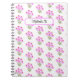 Um caderno com lindas flores roxas. A imagem e o fundo podem ser personalizados. Pode ser aditado um texto.