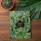 O notebook perfeito para a mãe da planta na sua vida. Uma coleção de calatheas e outras plantas tropicais verdes sobre fundo negro. Basta adicionar suas iniciais