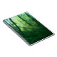 Raios do sol matinal a correr para uma brilhante floresta de Verão verde, com árvores maciças cobertas de mariposa e um espesso cobertor de mato. Uma fotografia manipulada digitalmente para dar às videiras sobrecultivadas, névoa azul-esverdeada, raios-deus ouro e árvore primavera-verde deixam uma qualidade de sonho.