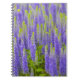 Este notebook tem flores roxas e verdes. Os amantes da natureza apreciarão este caderno!