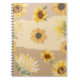 Bonito caderno estético de cor de água e girassol