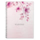 Caderno Espiral Notebook de flores rosa com aquarela