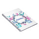 Um notebook maravilhosamente projetado com uma coroa floral de borboletas coloridas.