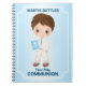 O caderno de fotos espiral da Comunidade Boy First Santa foi desenhado com um menino giro e moreno segurando bíblia. Há uma redação que você pode manter ou alterar para seu próprio texto clicando na opção PERSONALIZAR.