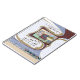 É um caderno bonito com uma ilustração cômica. Dá um sorriso ou um riso no rosto de qualquer um.