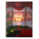 "Dar conhecimento da salvação às suas pessoas através da remissão dos seus pecados, através do compaixão tenro de nosso Deus; em que a primavera de alta-altura nos visitou, para dar luz a eles que se sentam na escuridão e na sombra da morte, para guiar nossos pés no caminho da paz." Luke 1:77-79 Sentado na árvore de Natal olhando pela janela em uma paisagem nevada observando o nascer do sol na manhã de Natal.