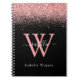 Notebook moderno com brilho preto e rosa, elegantemente adornado com seu monograma de script, nome próprio e inicial.