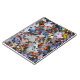 Fotografia de peças de quebra-cabeça de serra-de-vidro impressas em borda de notebook.
