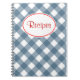 Gingham azul decora este caderno de receitas estilo country. Use este notebook para anotar suas receitas favoritas, ideias, listas de compro, etc... O design é da arte original.