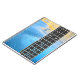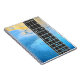 Este caderno tem uma bela imagem de água e um violão nele.