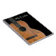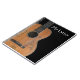 Fotografia de um antigo violão acústico sobre fundo preto (personalizável) e as palavras (personalizável) "Minhas letras" impressas perto do topo.