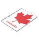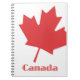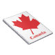 caderno espiral branco com uma folha vermelha e o Canadá em letras vermelhas.