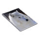Fotografia de um lobo Ártico cortada na cabeça e no peito impressa nas bordas do caderno.