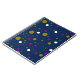 Um padrão de círculos de vários tamanhos em ouro, branco, roxo e verde está espalhado sobre um fundo azul escuro. Os círculos são espaçados uniformemente e variam de diâmetro.