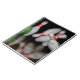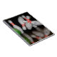 Um notebook espiral com uma foto de pinos de boliche e uma bola de boliche.